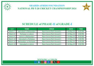 SHAHID AFRIDI FOUNDATION NATIONAL PD T-20 CRICKET CHAMPIONSHIP 2024